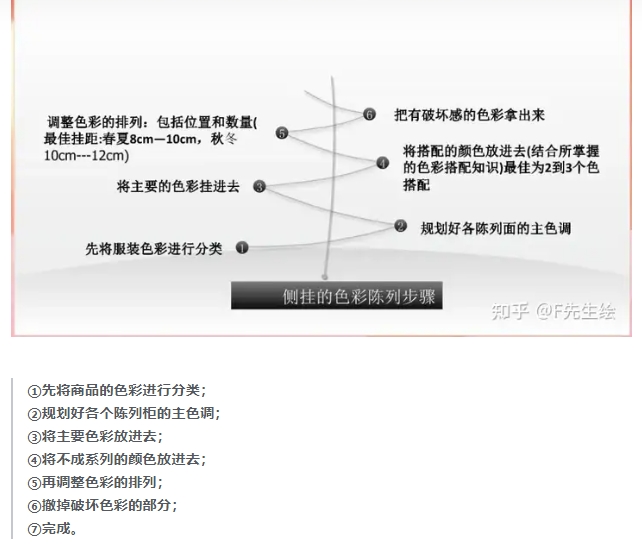 1. 正挂陈列服装色彩渐变应由外向内、从前向后、由浅至深。