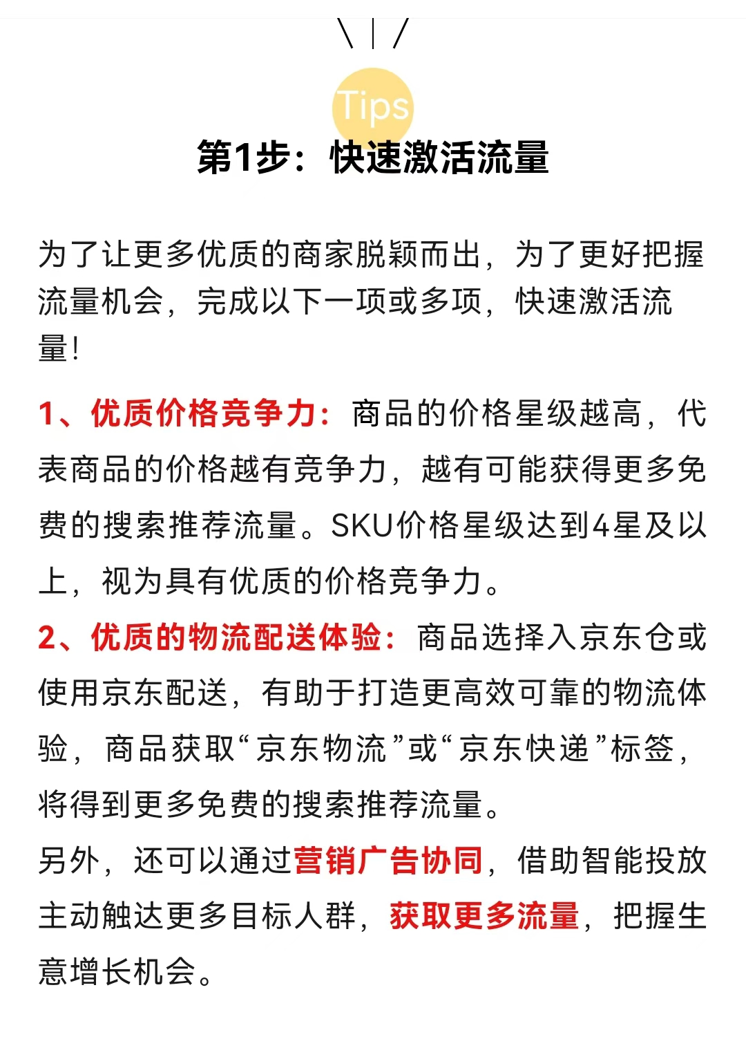 简而言之就是,商家需要把商品性价比打得高一些、消费者满意度也不能忽略,这样的话京东就会给商品分配更多流量了。